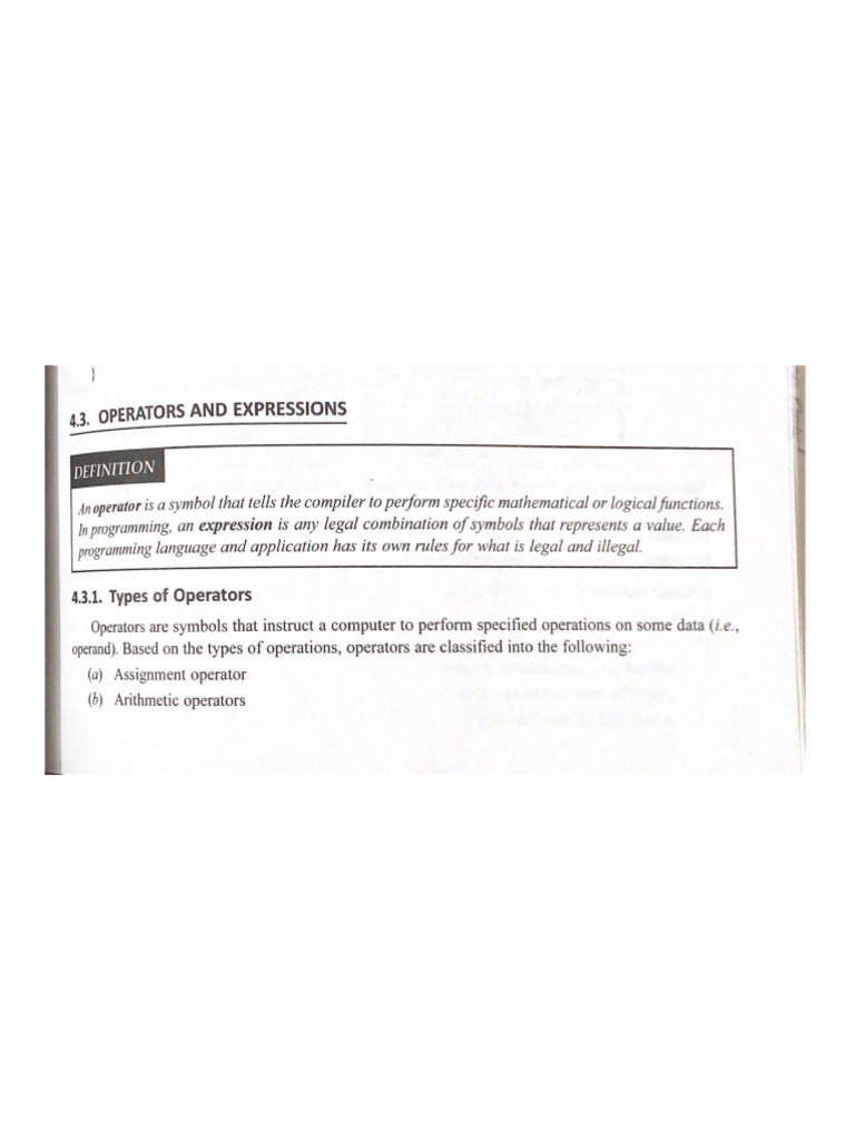 Operators and Expressions: A Comprehensive Guide for Computer | Course Hero