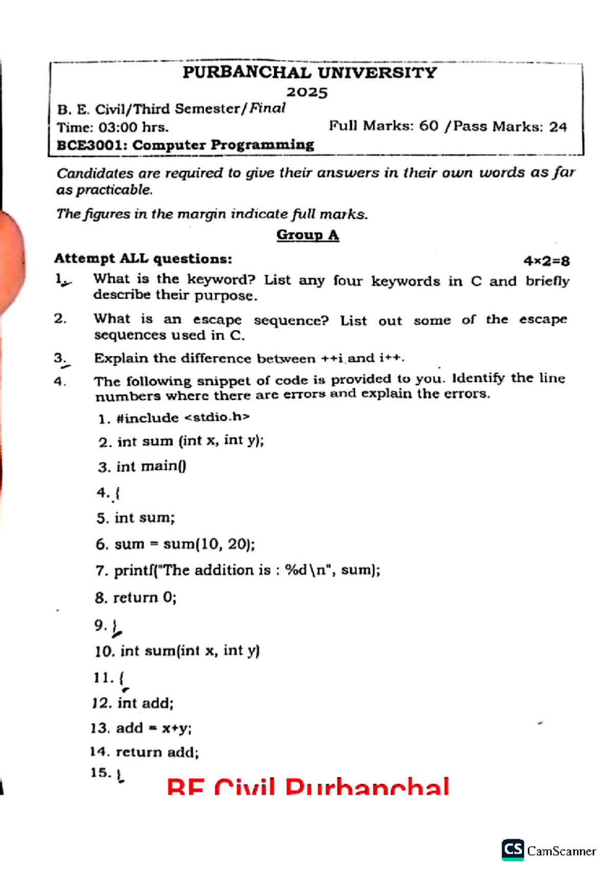 BCE3001: Computer Programming 2025 - Practice Material - Studocu