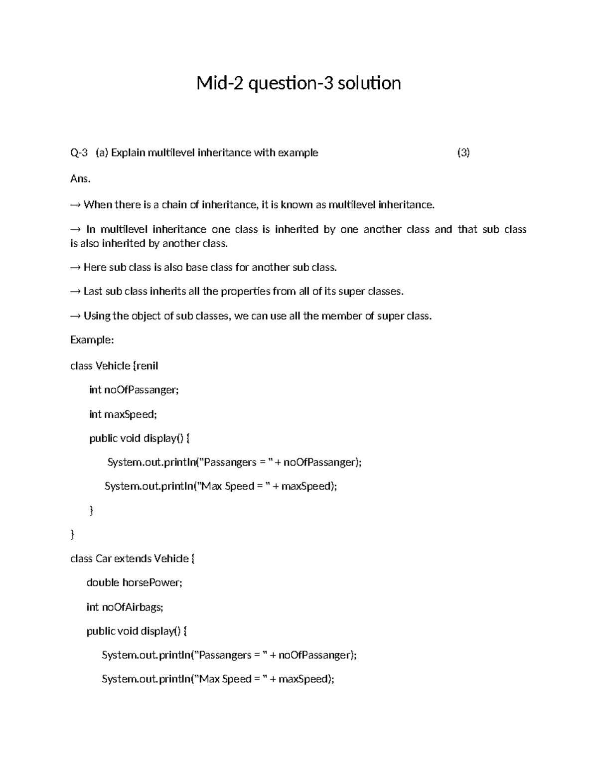 Java Midterm Exam Q3: Multilevel Inheritance & Keywords Explained - Studocu