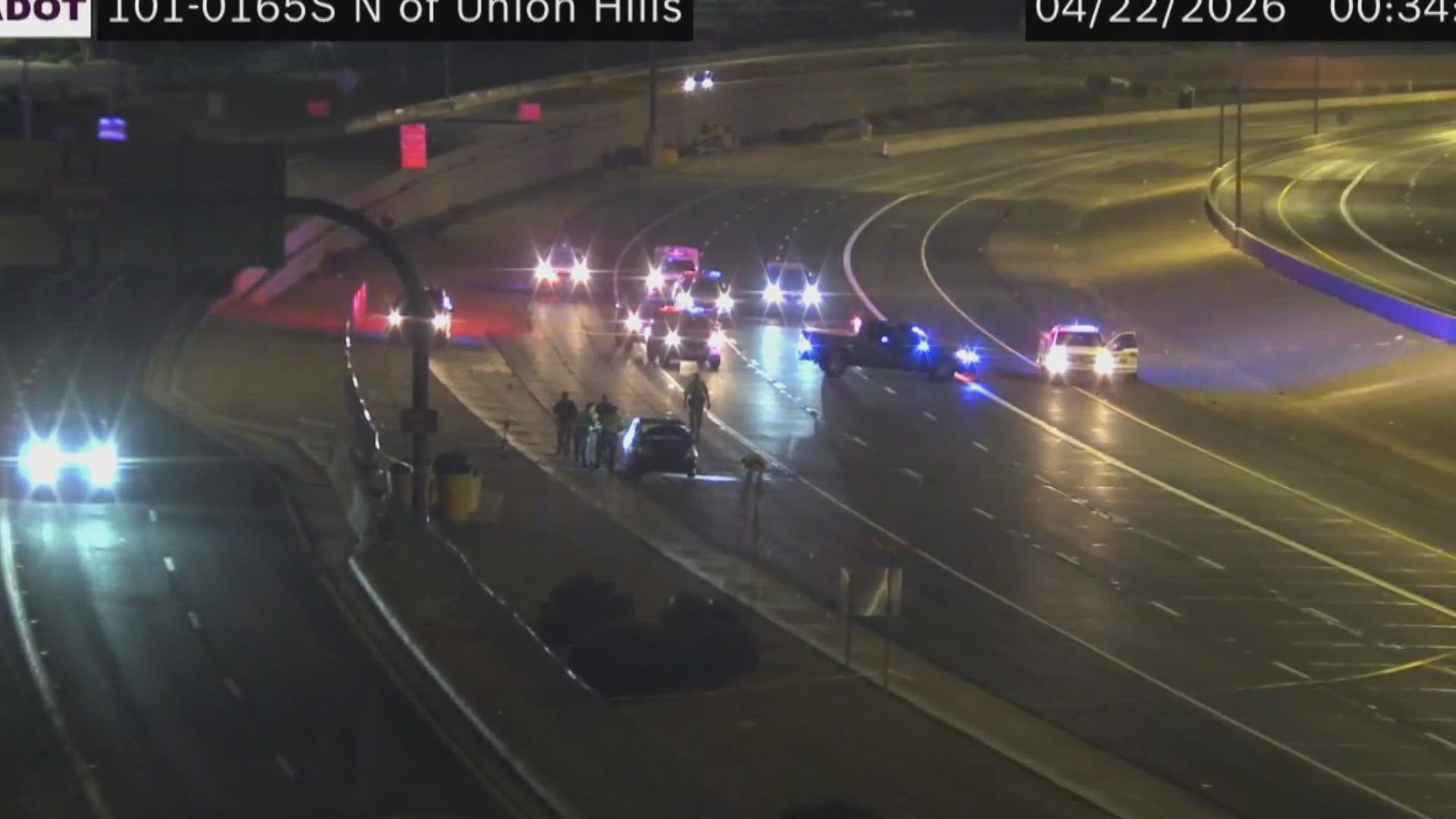 Body found, woman detained after car fire on Loop 101 near Glendale