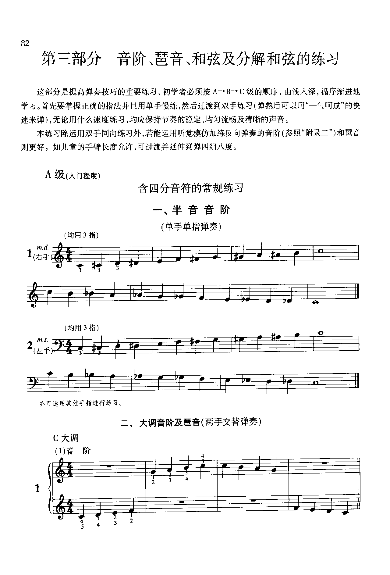 儿童钢琴手指练习谱【音阶、琶音、和弦及分解和弦的练习】A级含四分音符的常规练习 半音音阶(单手单指弹奏)_钢琴乐谱_乐器资源网