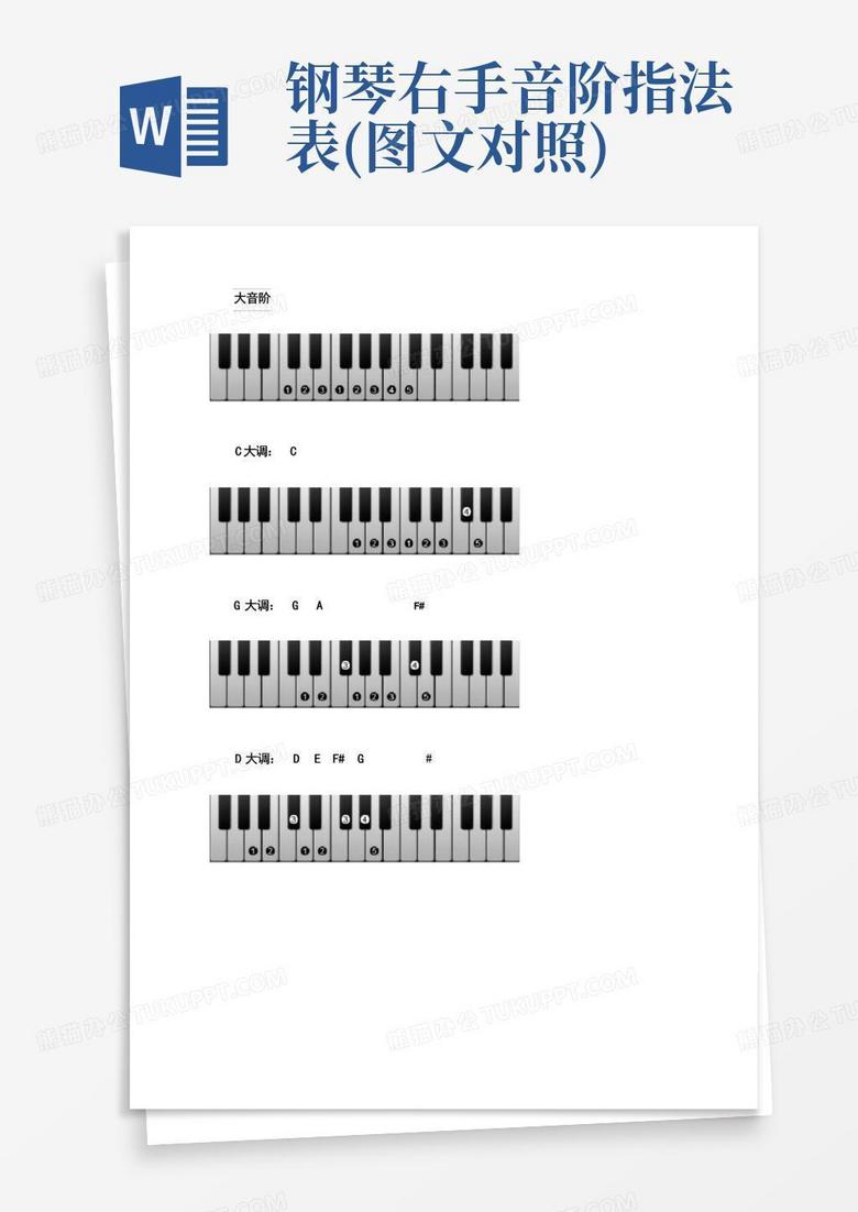 钢琴右手音阶指法表(图文对照)Word模板下载_编号qmkzvdgb_熊猫办公