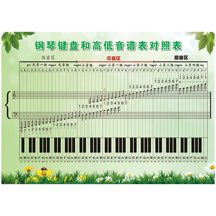 音符乐理表音乐教室布置挂图符号常识宣传画海报五线谱简谱知识墙贴纸大谱表与钢琴键盘对照表贴纸SCD SCD04-04 钢琴键盘和高低音谱表对照图 ...