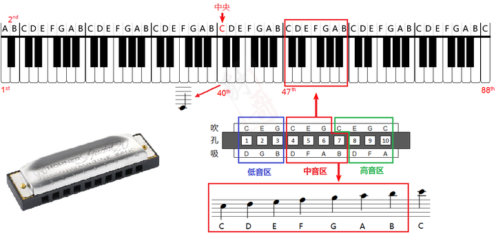 钢琴知识 | 钢琴入门之钢琴键盘与大谱表对照表 - 慕言钢琴选购中心