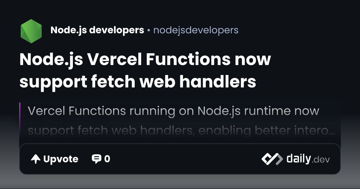 Node.js Vercel Functions now support fetch web handlers | daily.dev