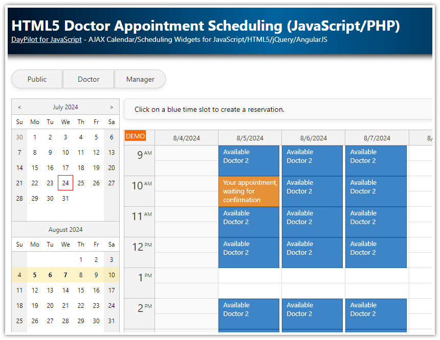 HTML5 Doctor Appointment Scheduling (JavaScript/PHP/MySQL) | DayPilot Code