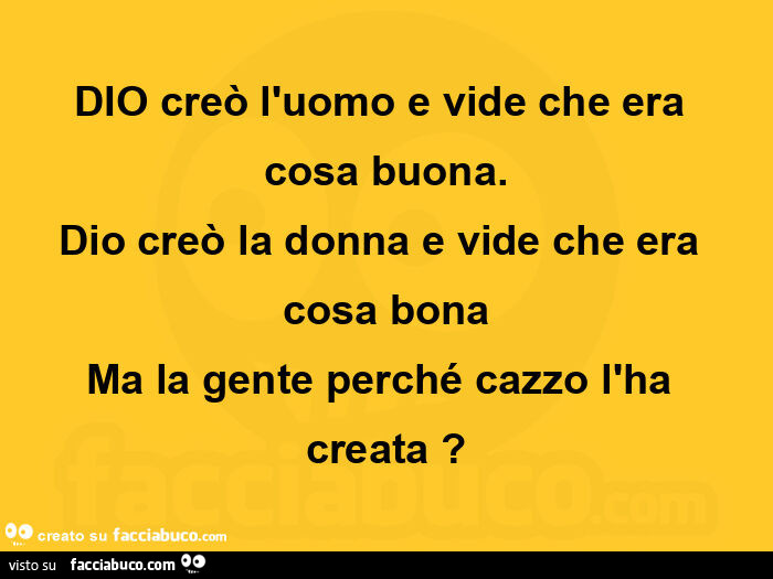 Dio creò l'uomo e vide che era cosa buona. Dio creò la donna e vide che ...
