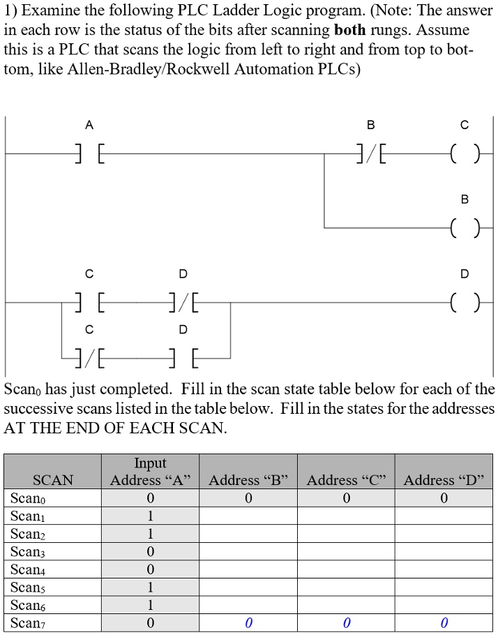1) Examine the following PLC Ladder Logic program. (Note: The answer in ...