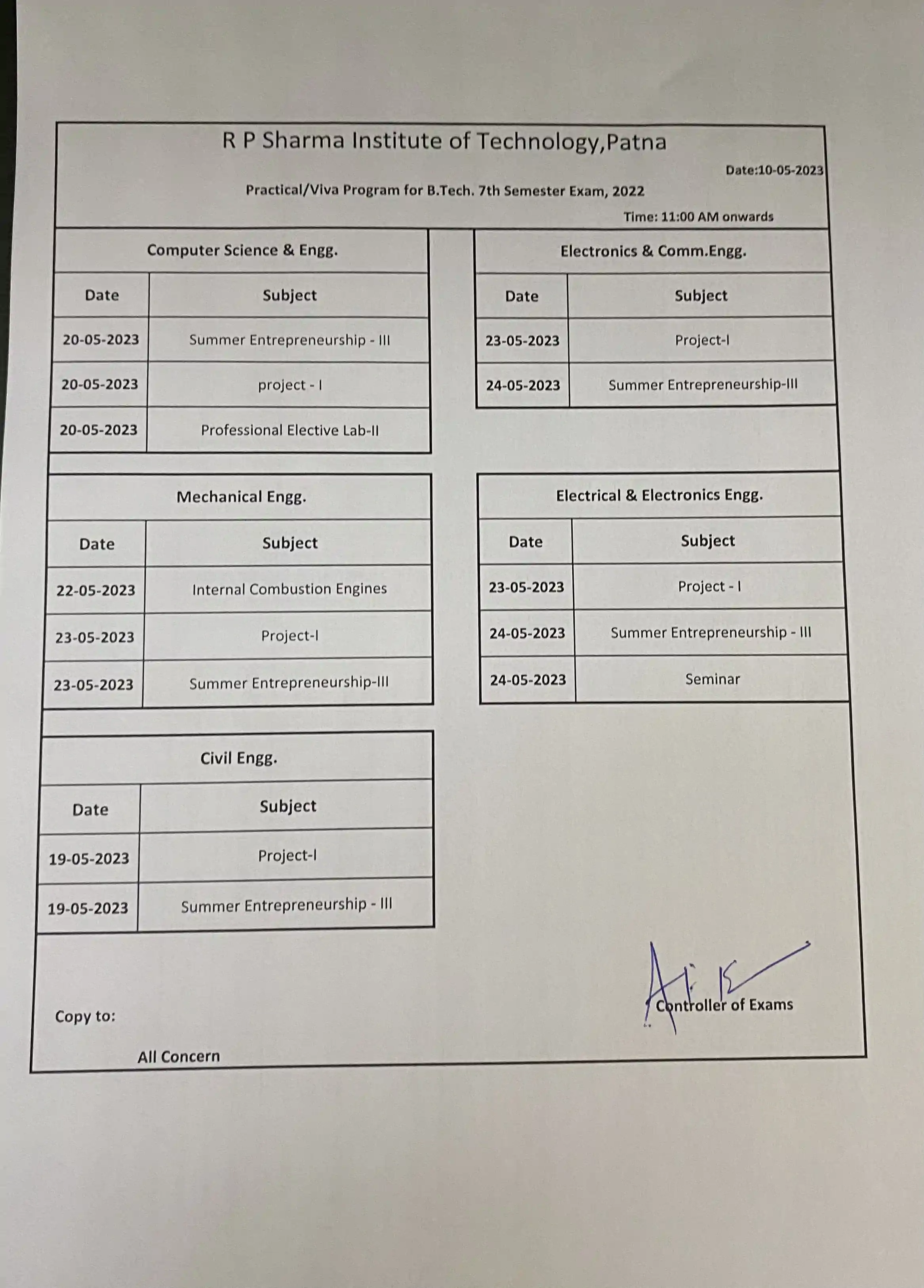 Time Table of B.tech in Civil Engineering Vith Semester Examination ...