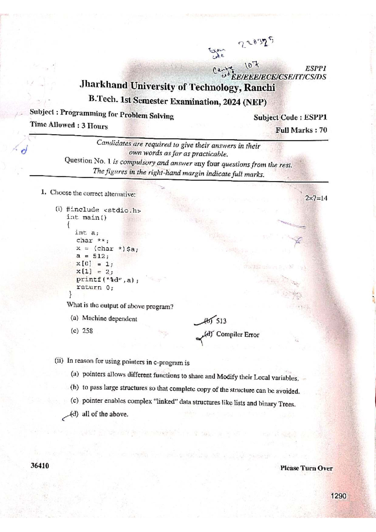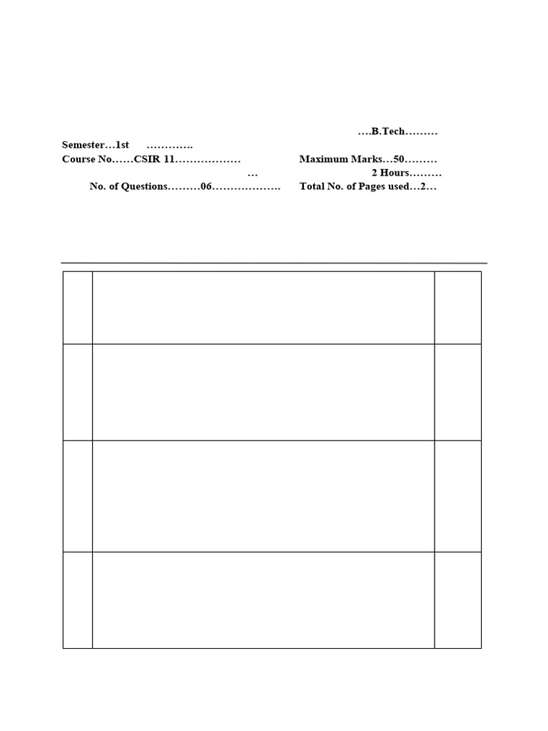 Programming for Problem Solving - Question Paper - B.Tech. 1st Year ...