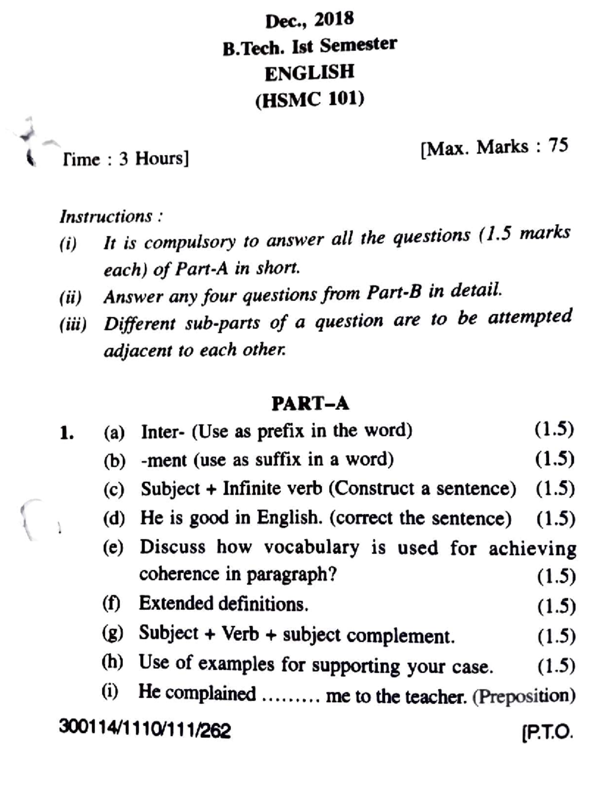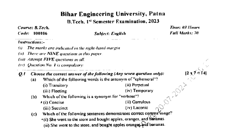 B.Tech 1st Sem English Exam Paper 100106 - 2023 - Studocu