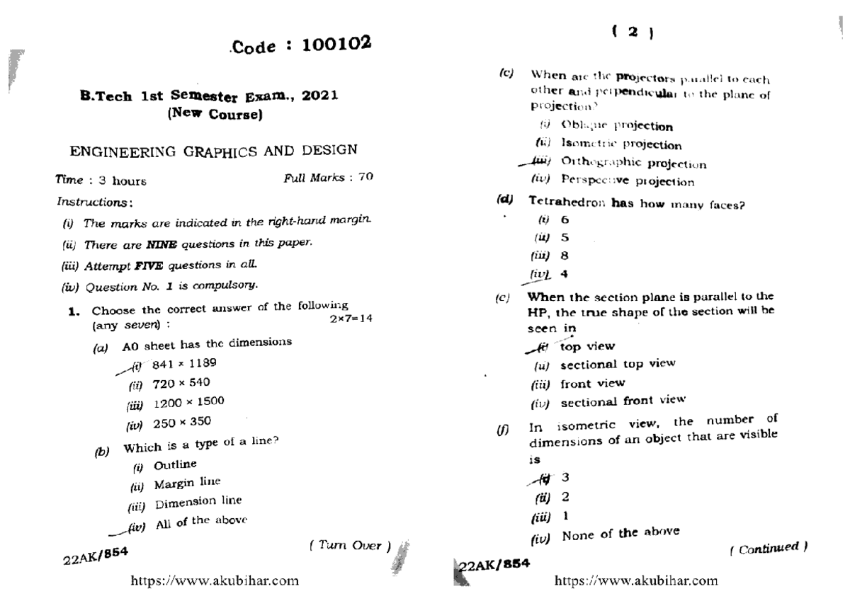 B.Tech 1st Sem Engineering Graphics & Design Exam 100102, 2021 - Studocu