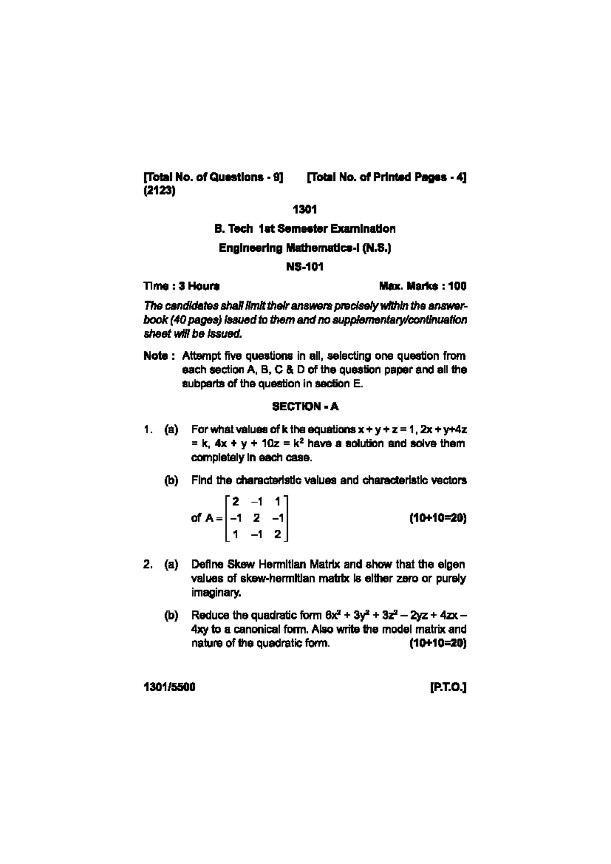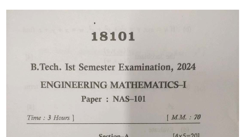 Engineering Mathematics (1301) - B. Tech 1st Sem Exam Paper - Studocu