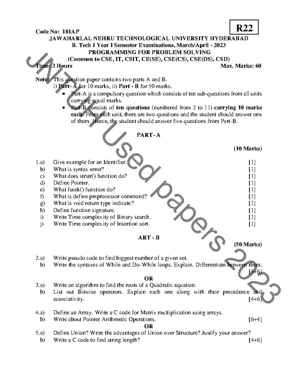 B.Tech 1st Sem Final Exam - Programming for Problem Solving (181AP ...