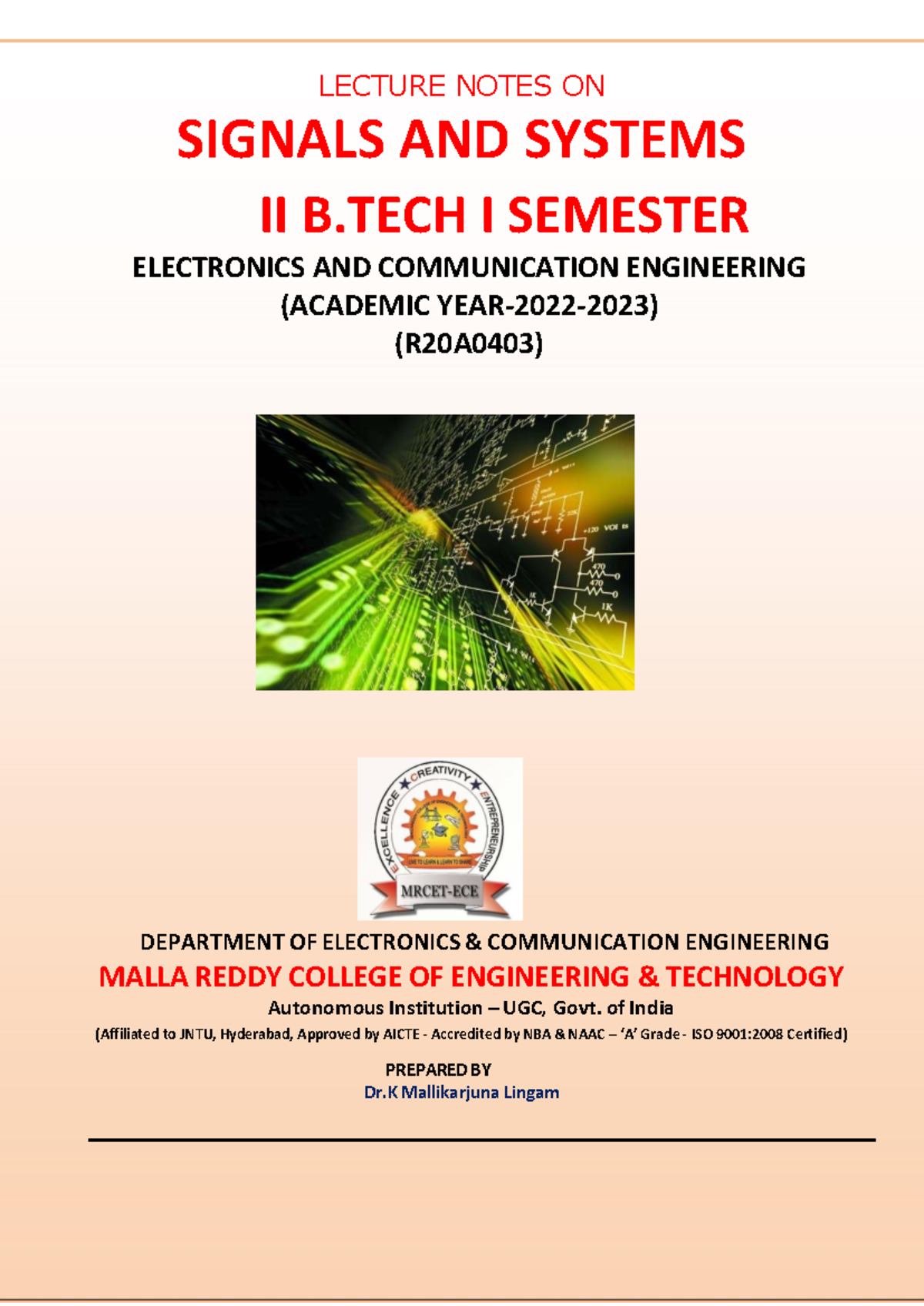 LECTURE NOTES ON SIGNALS AND SYSTEMS II (R20A0403) B.TECH 1ST SEM - Studocu