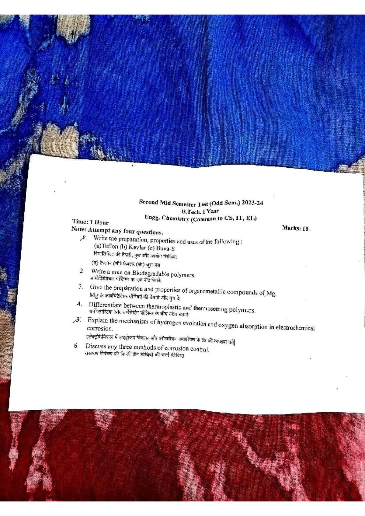 B.Tech 1st Sem. CT2 - Engg. Chemistry & Soft Skills Midterm Exam - Studocu