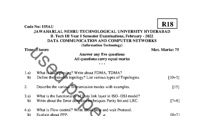 R18 155AU B.Tech 1st Sem Feb 2022 Data Comm & Networks QP - Studocu