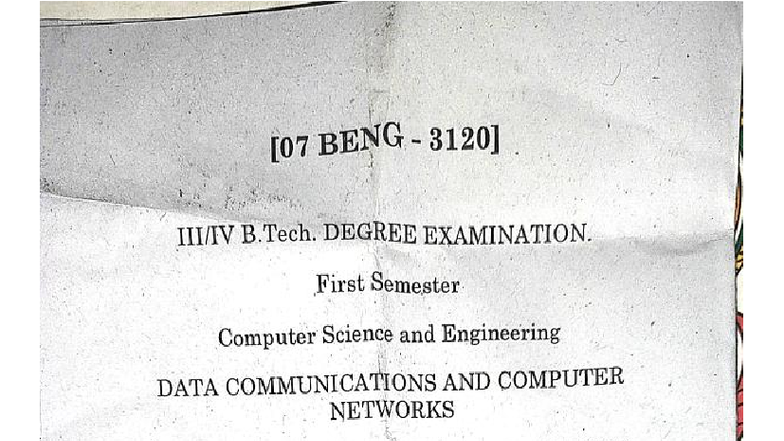 BENG B. Tech. 1st Sem. Exam: Data Communications & Networks - Studocu