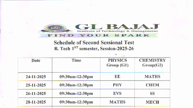 B.Tech 1st Sem 2024-25 Schedule for Second Sessional Test - Studocu