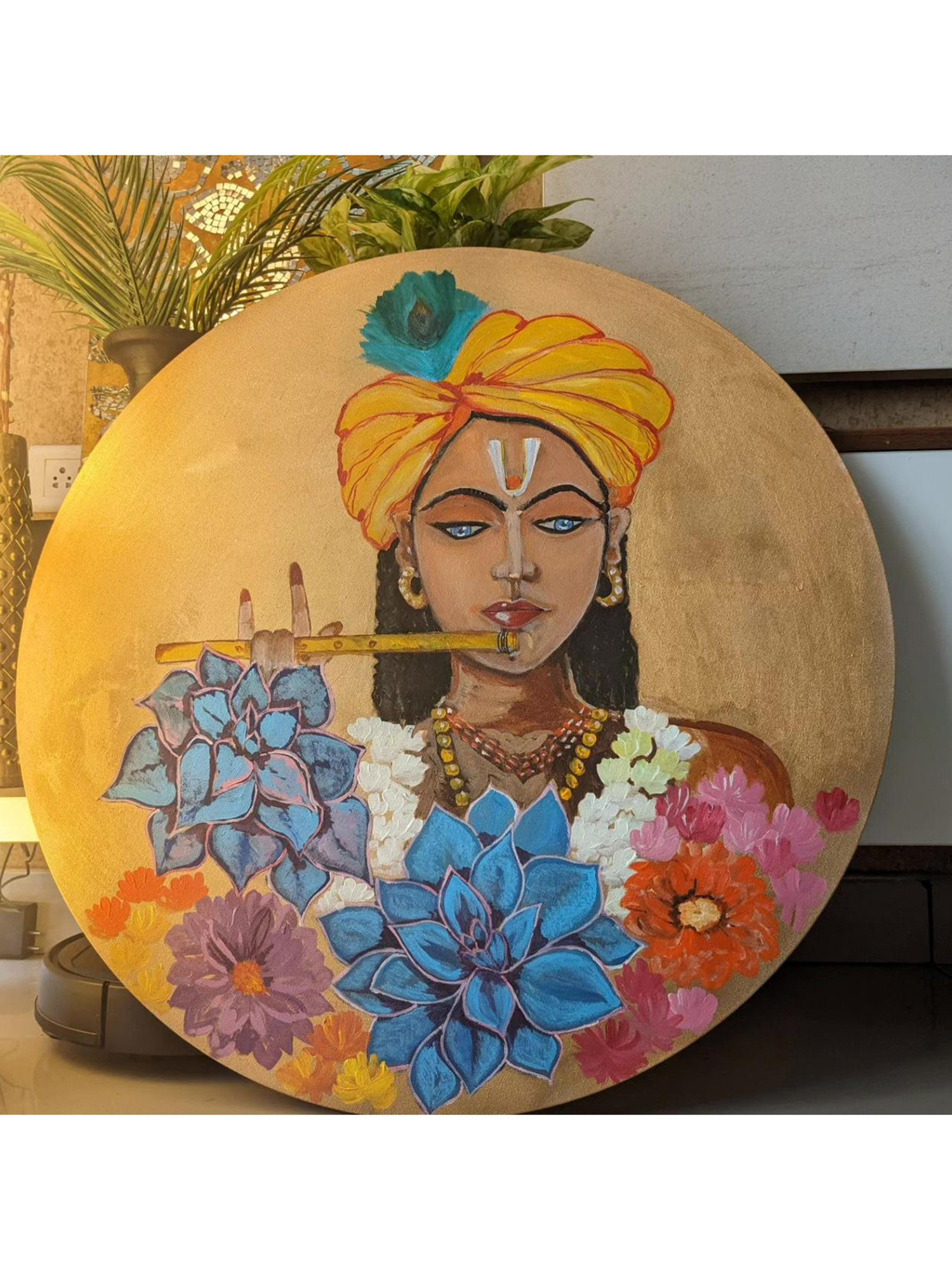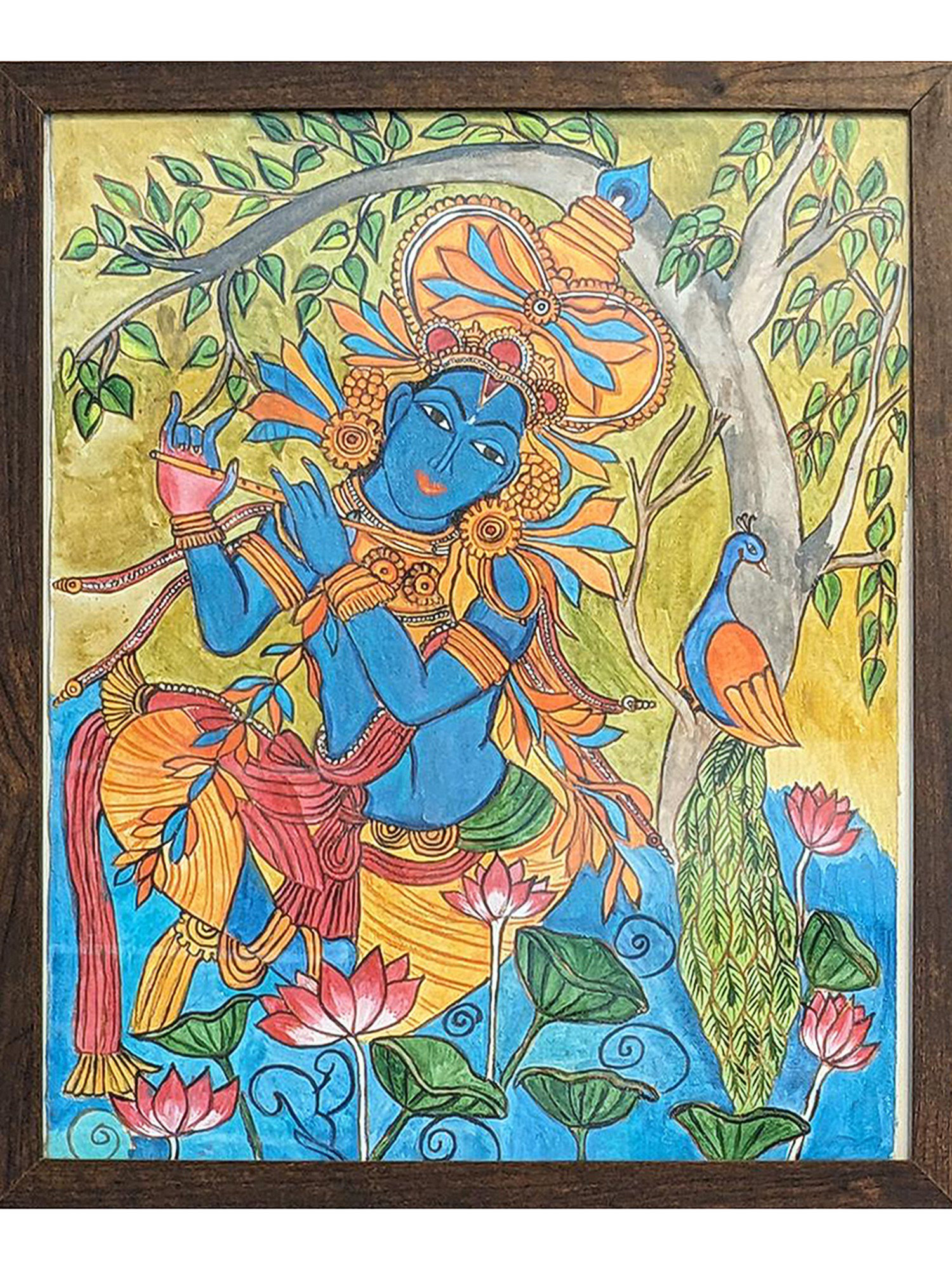 Bungalow Rose Fluting Krishna Under The Tree | With Frame | Acrylic On ...