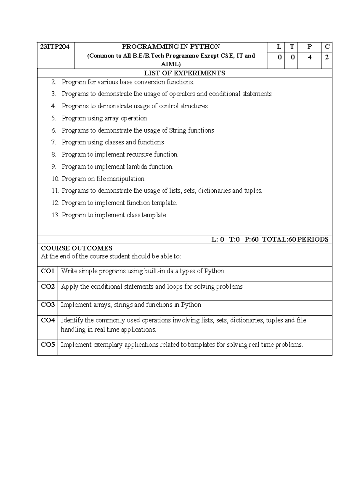 23ITP204 Programming in Python (Practical Lab Exercises) - Studocu