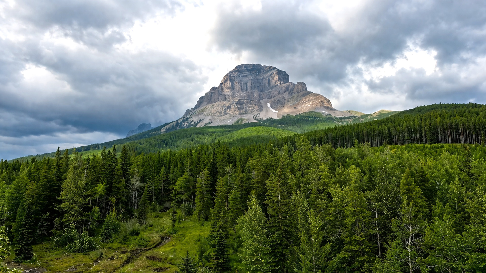 A wild mountain pass cutting through Alberta’s landscape