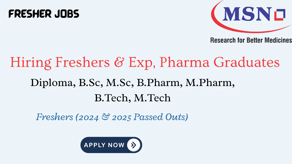 MSN Labs Hiring Freshers & Experienced Pharma Graduates