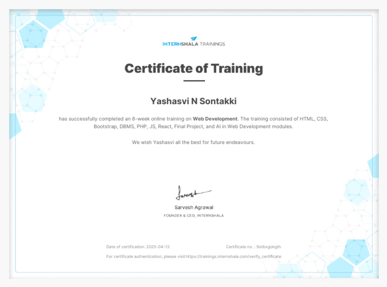 Web Development Training - Certificate of Completion | PDF