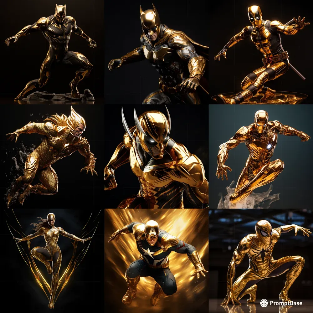 Golden Superhero Poses Unleash Powers Midjourney Prompt | PromptBase