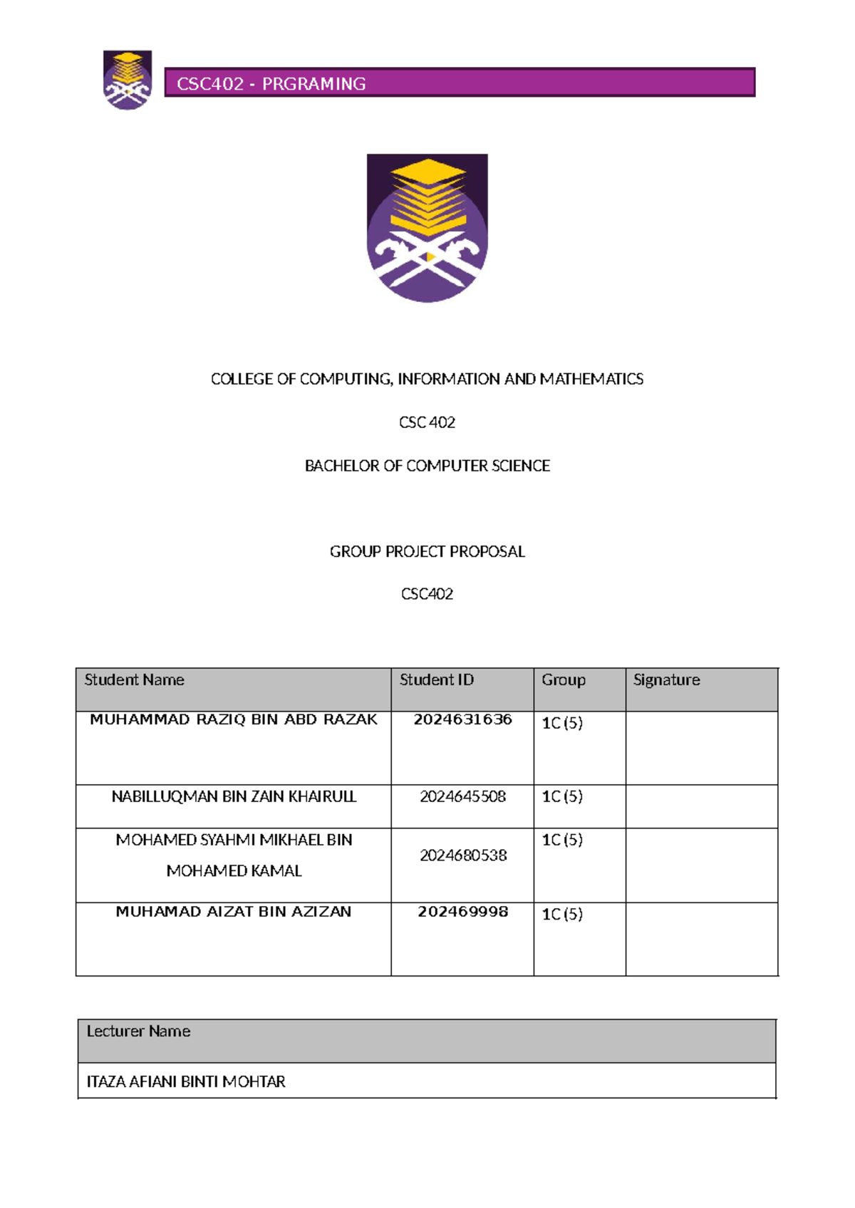 FSKM CSC402 Programming Group Project Proposal: Library System - Studocu