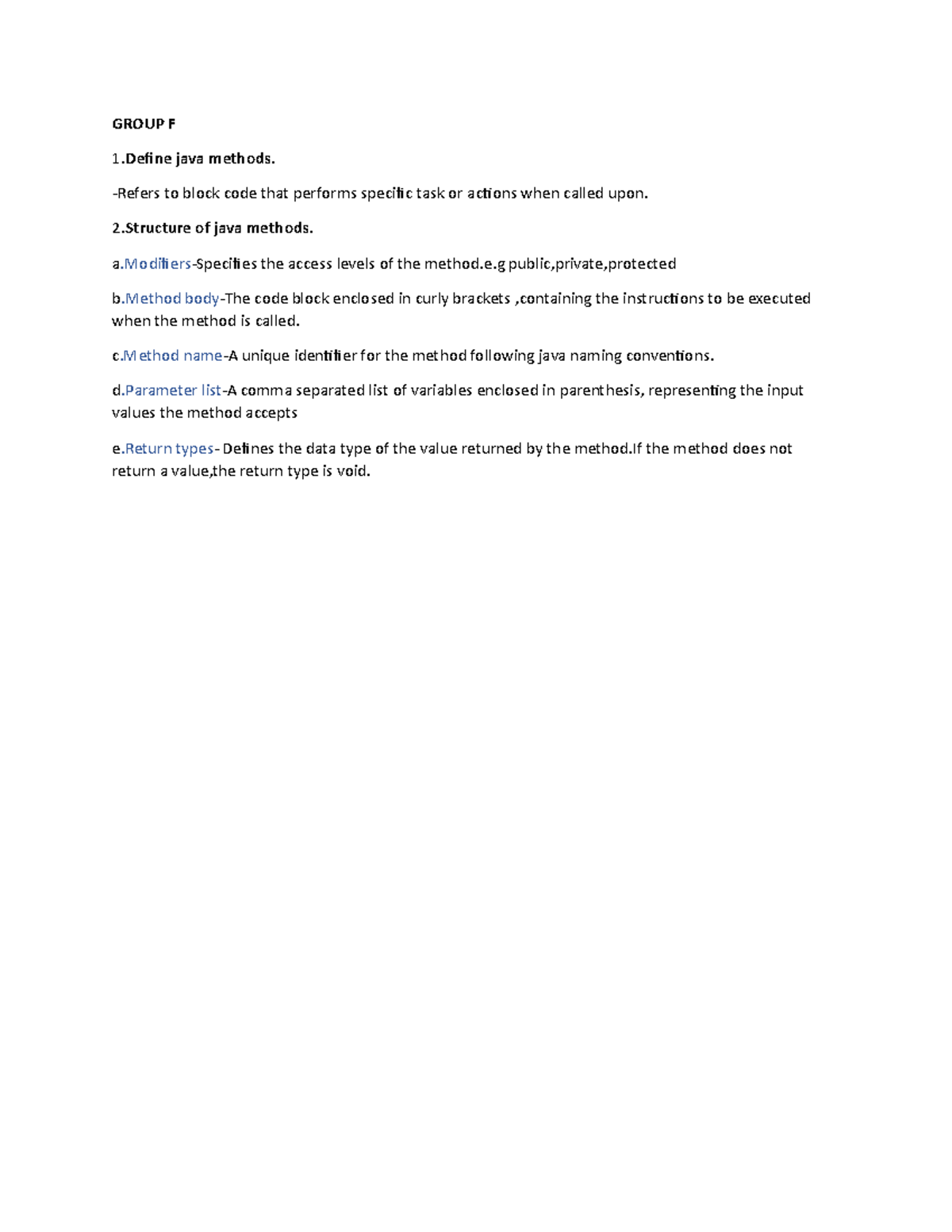 Group F assignment programming - GROUP F 1 .Define java methods. Refers ...