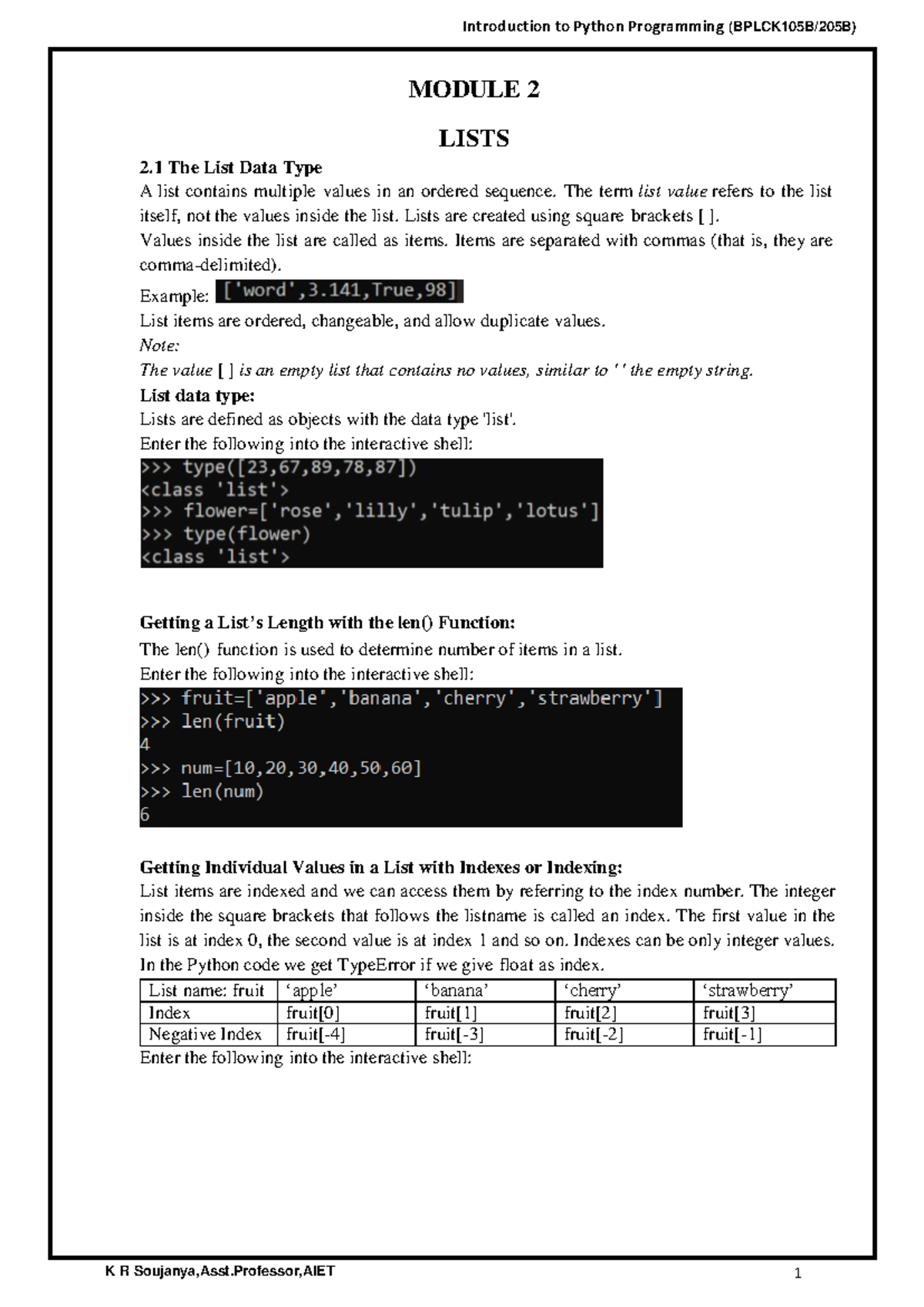 Module 2 Notes: Understanding Lists in Python Programming - Studocu
