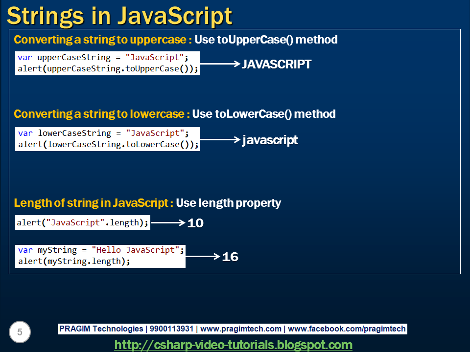 Sql server, .net and c# video tutorial: Strings in JavaScript