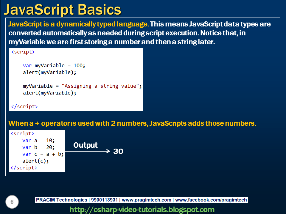 Sql server, .net and c# video tutorial: JavaScript Basics
