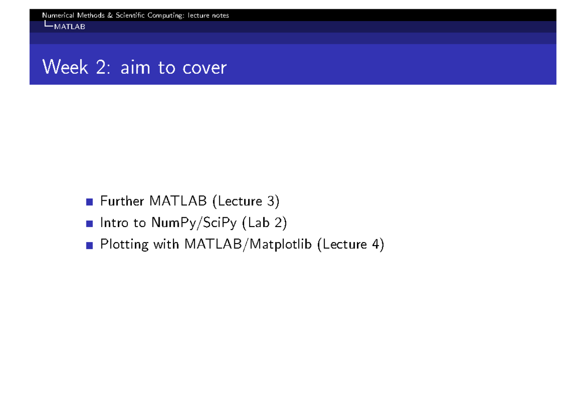 Lecture 3 - work - MATLAB Week 2: aim to cover Further MATLAB (Lecture ...
