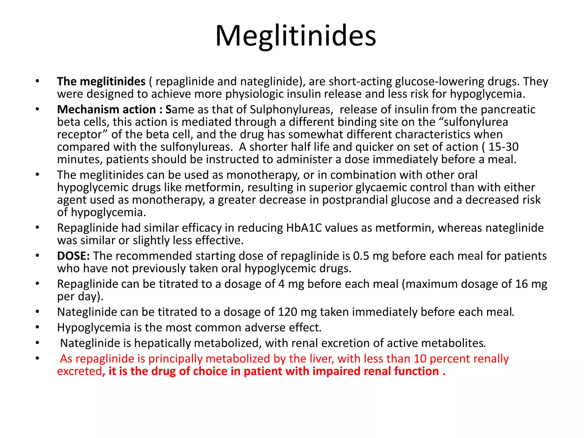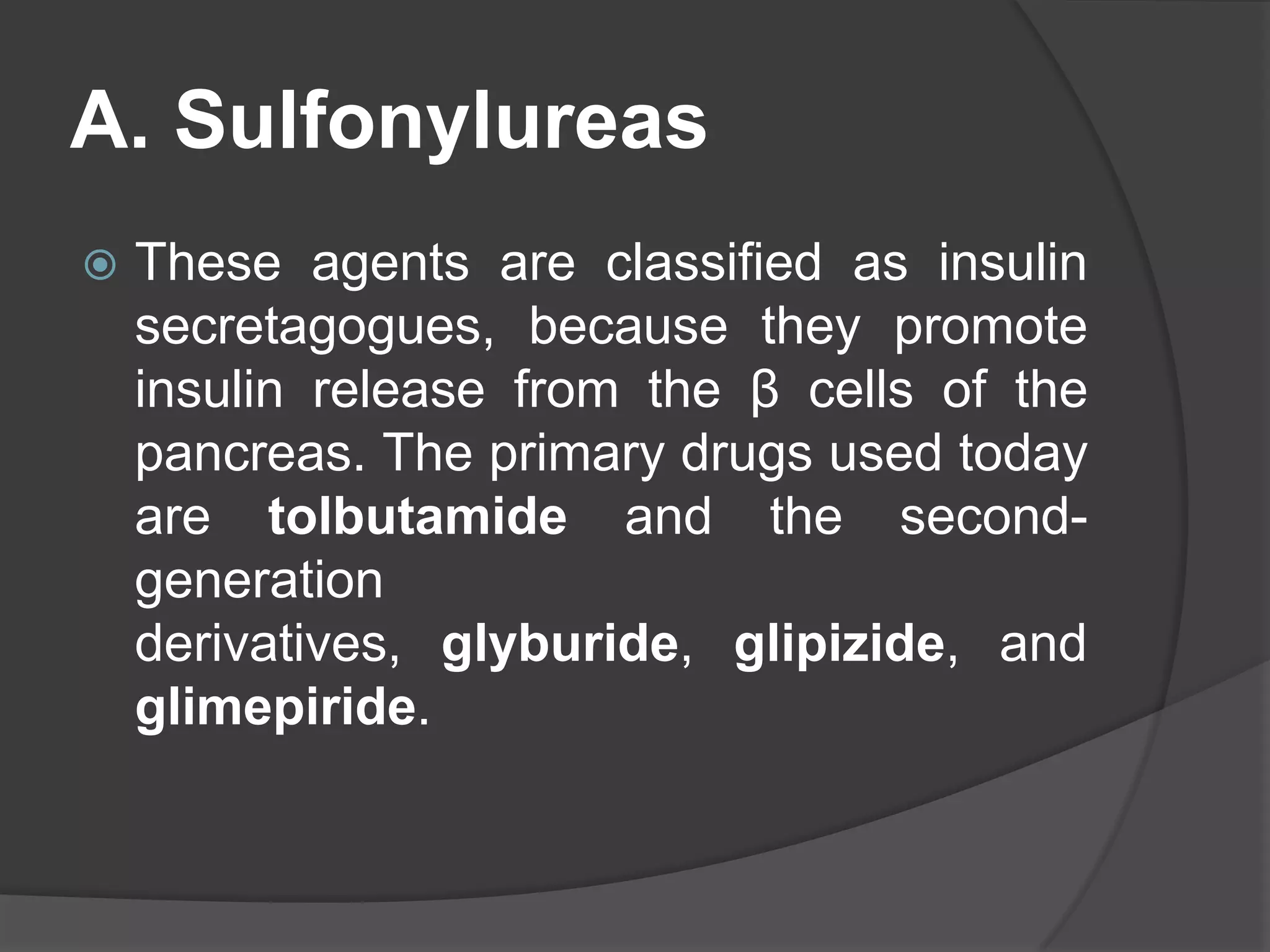 Oral antidiabetic - 1) Sulfonylurea MOA: Sulfonylureas and meglitinides ...