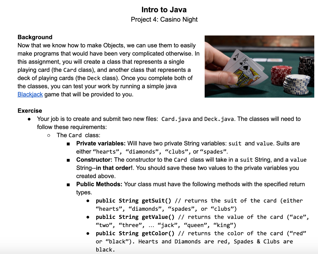 Solved Intro to Java Project 4: Casino Night Background Now | Chegg.com