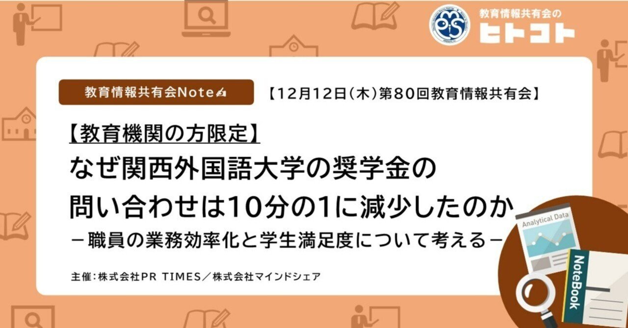 【教育機関の方限定:無料】12月12日(木)第80回教育情報共有会「なぜ関西外国語大学の奨学金の問い合わせは10分の1に減少したのか-職員の ...