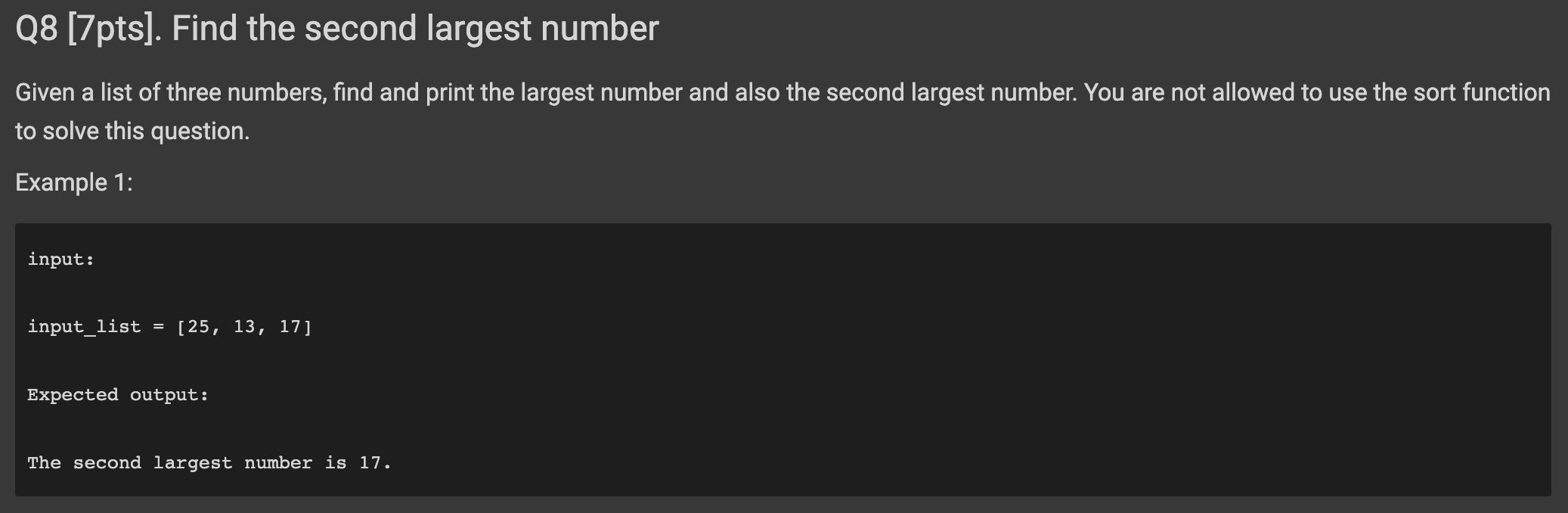 Solved Q8 [7pts]. Find the second largest number Given a | Chegg.com