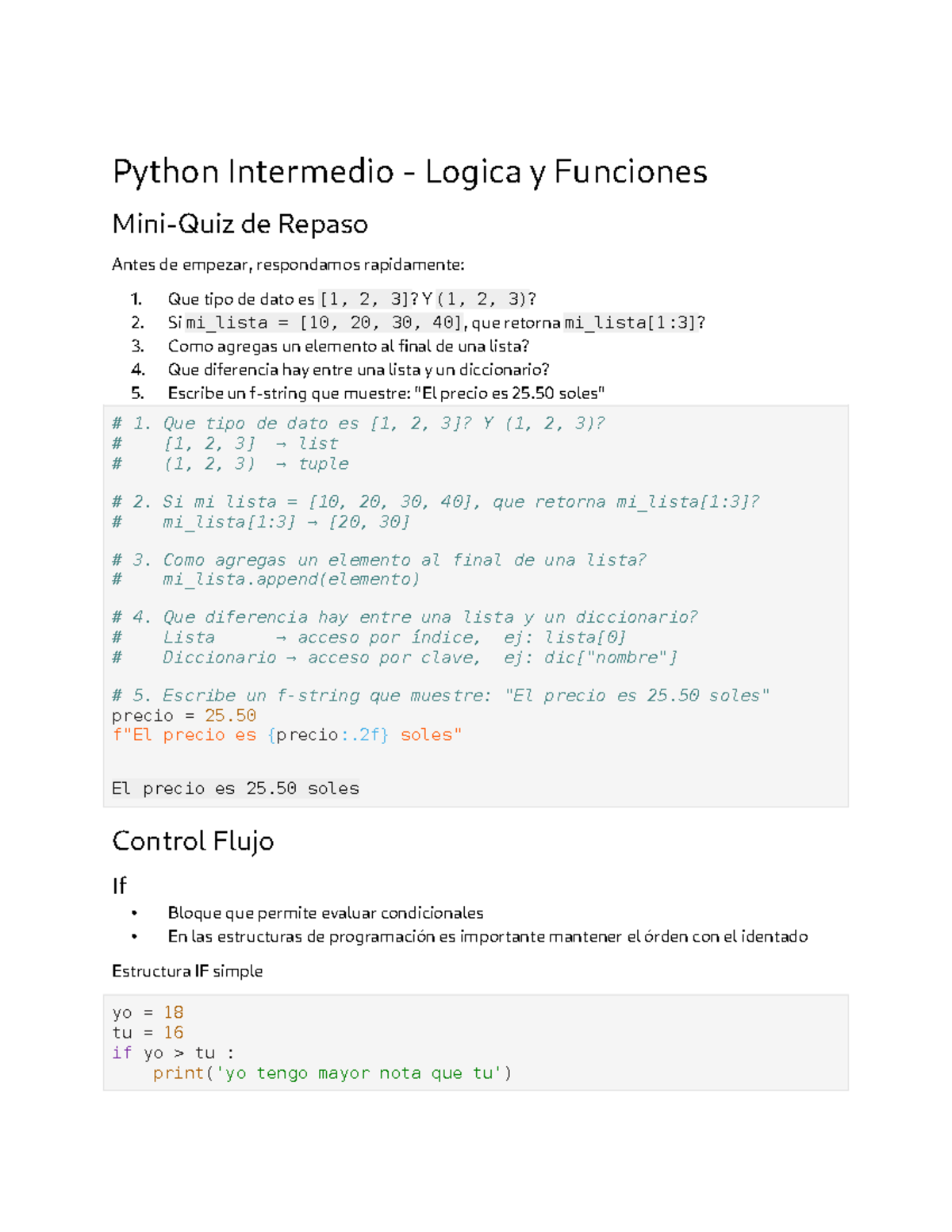 Repaso de Lógica y Funciones en Python Intermedio - 01B - Studocu