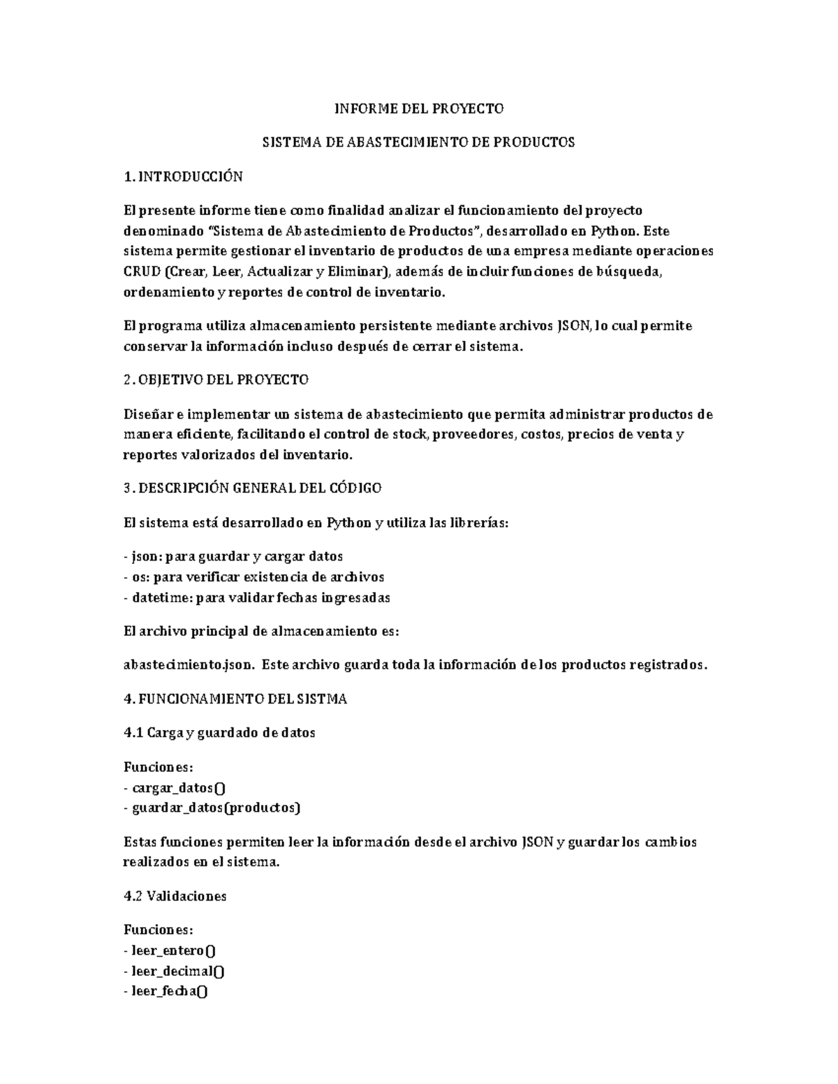 Informe del Proyecto de Abastecimiento en Python - Caso 01 - Studocu