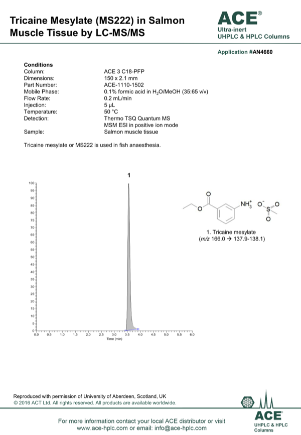 Tricaine Mesylate (MS222) in Salmon Muscle Tissue by LC-MS-MS - MAC-MOD ...
