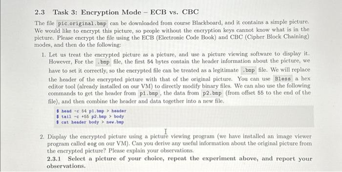 Solved 2.3 Task 3: Encryption Mode - ECB vs. CBC The file | Chegg.com