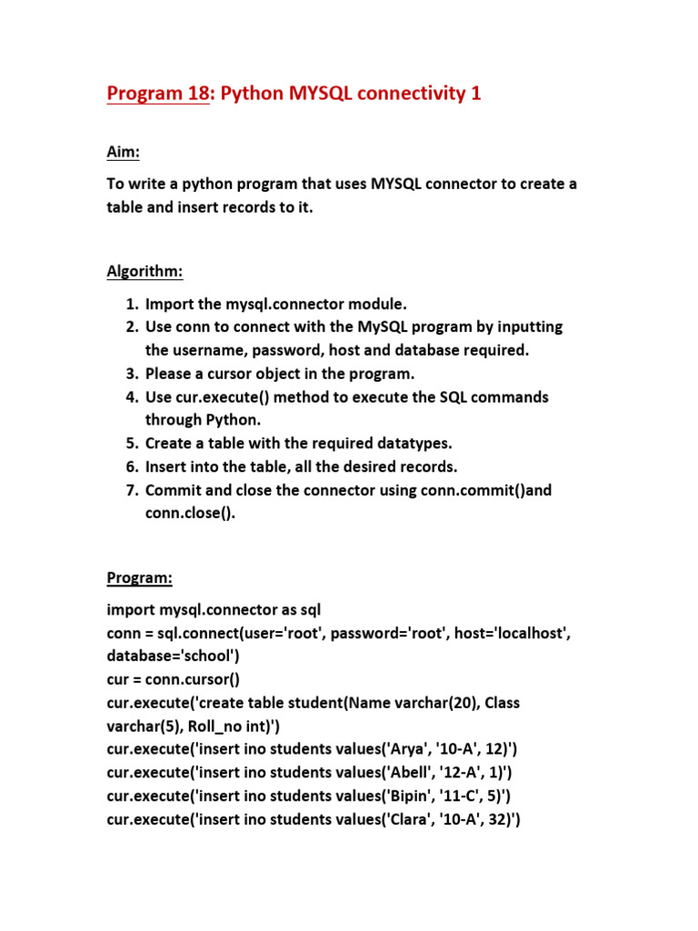 Python MySQL CRUD Connectivity Guide | PDF