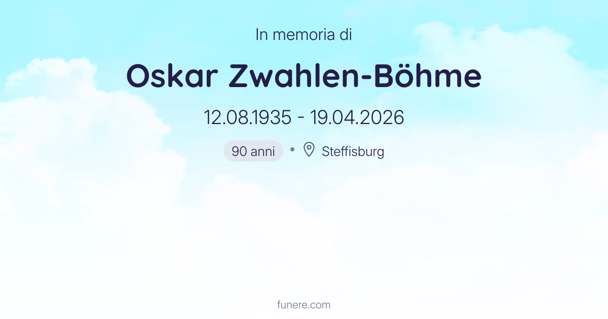 Annuncio funebre Oskar Zwahlen-Böhme, Steffisburg, Berna - Omaggio e ...