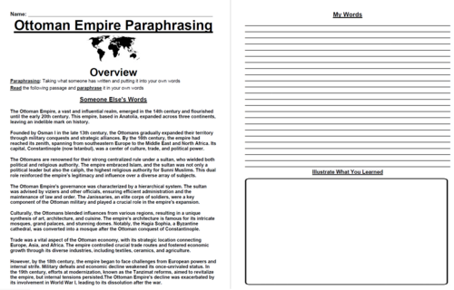 Ottoman Empire Paraphrasing Worksheet Packet (15 Assignments ...