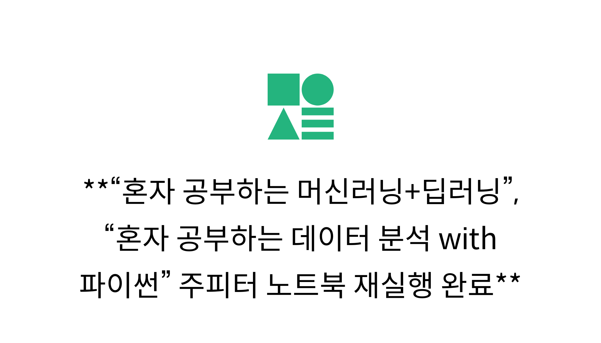 “혼자 공부하는 머신러닝+딥러닝”, “혼자 공부하는 데이터 분석 with 파이썬” 주피터 노트북 재실행 완료 - mysetting