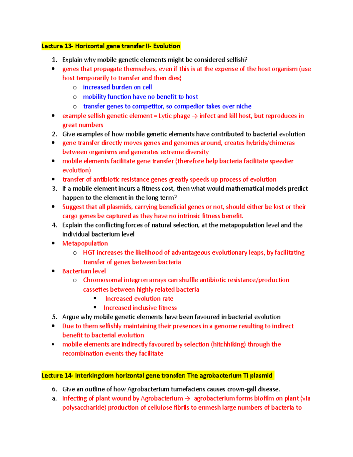 Final exam - study questions - Lecture 13- Horizontal gene transfer II ...