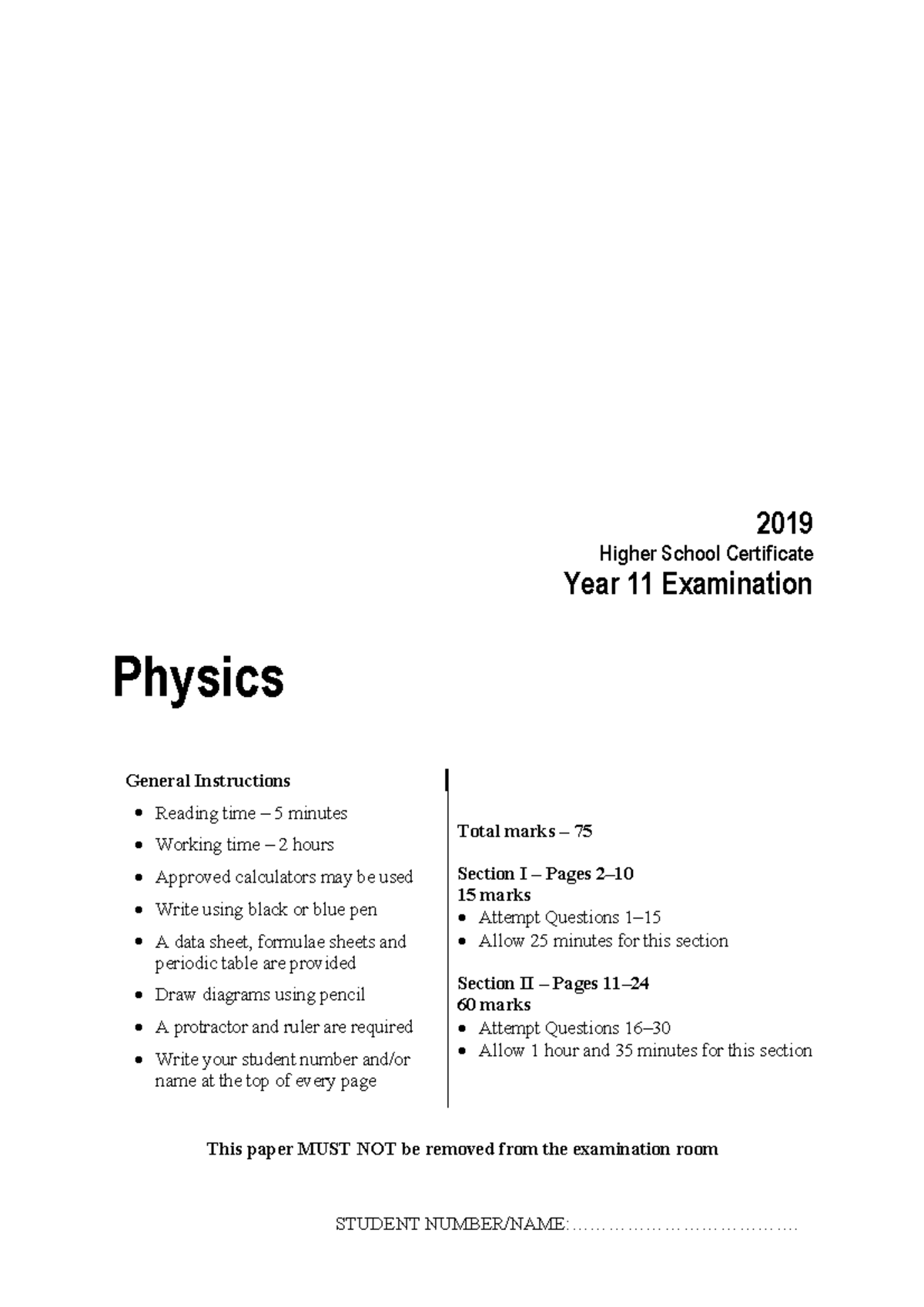 2019 Physics prelim - STUDENT NUMBER/NAME ...