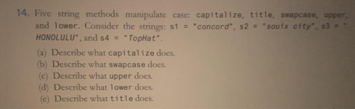 Solved 14. Five string methods manipulate case: capitalize, | Chegg.com